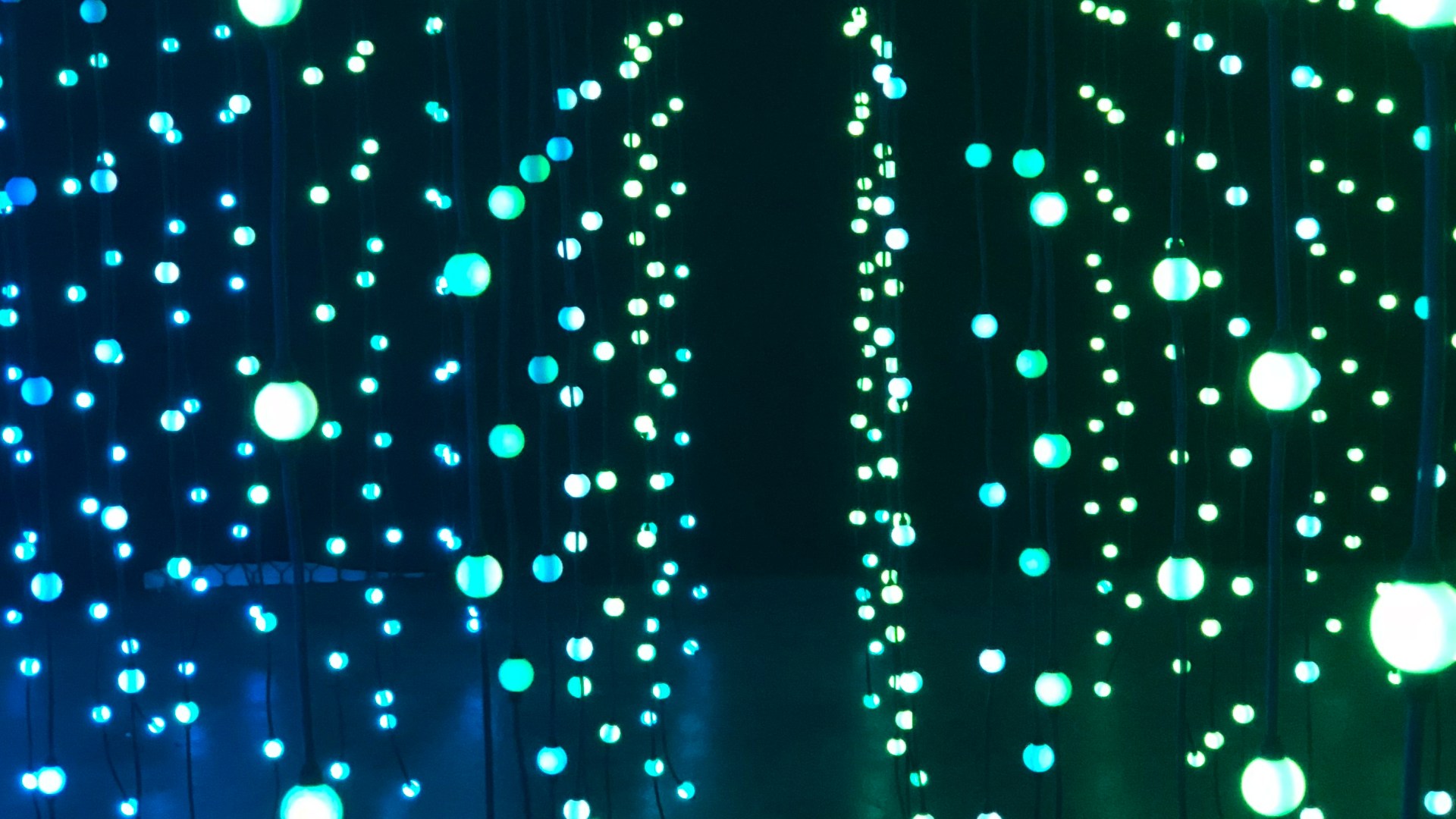 Text from Wonder Spaces Site: “Submergence is a large, immersive, walkthrough experience. It uses up to 8,064 individual points of suspended light to create feelings of presence and movement within physical space. The installation transforms space into a hybrid environment where virtual and physical worlds coincide. As you enter the piece, you are walking into a space occupied by both real and virtual components, and you can affect both”