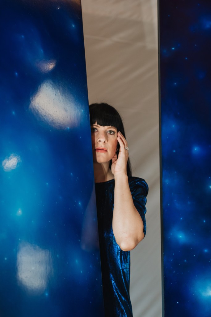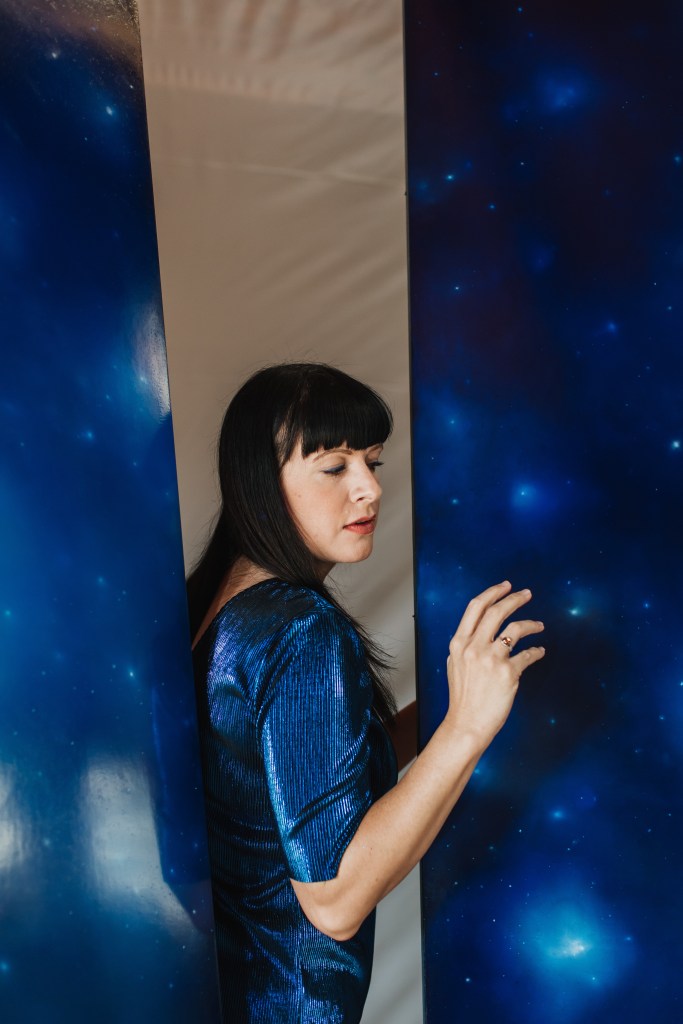 I’ve talked a bit before about that gut reaction you have when you see something that resonates with you. Right away you know you want to be near it; know more about it; be a part of it. I feel that it’s the most true for me with art. Art that truly speaks to you individually should illicit an immediate reaction and say something specific to your soul. You also don’t always have to know what the artist intent is in order to garner your own meaning and feel something deep about it. This gut reaction hit me hard when I first came across the art of Peter Halasz. Something about his use of light in his work drew me in immediately and it’s luminescence is unmatched in anything I’ve seen in a long time. I am specifically drawn to his dreamy celestial pieces. They appear to me to be what it would be like to be floating alone inside of a galaxy. Coincidently he has just completed a private commission of a particularly large celestial diptych and I was lucky enough to score private studio visit with Peter to check out these new works before they went to their new home. He allowed Stacy Keck and I to do a mini shoot with these gorgeous pieces. The results in my opinion are some of the most ethereal photos I’ve ever featured.