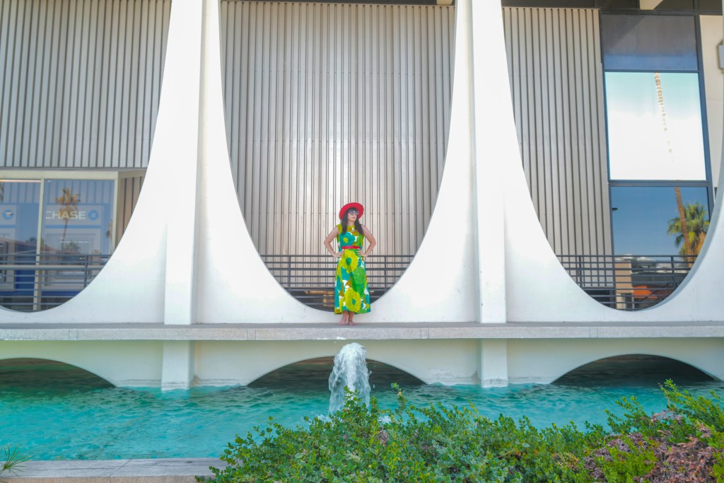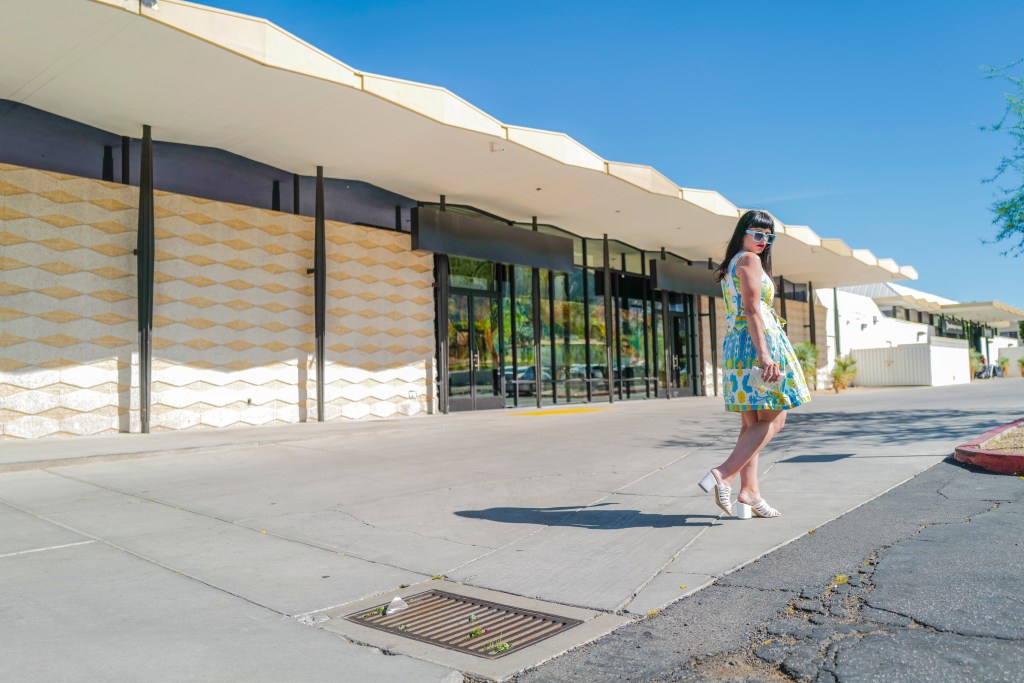 I can never stay away from Palm Springs long and have recently come to regard it as a second home. I have been lucky enough to begin to make some connections in the area and none more special than artist, photographer and all-around Palm Spring ambassador Everette Solomon…known by his Instagram handle JevPic. He is a dear soul and an immense talent and we always try to find time to shoot together when I’m there. I finally had a chance to visit Palm Springs during Modernism week, and to mark the occasion Jev and I decided to shoot with some of the modernist architecture. Its no secret I’m a super fan of all things Midcentury so the buildings are just as much celebrities to me as glitterati who have and still do call Palm Springs their playground. We chose to highlight three stars of architecture in the downtown area; each one unique in design, but originating from the same moment in time when a modernist boom was taking over the Coachella Valley.