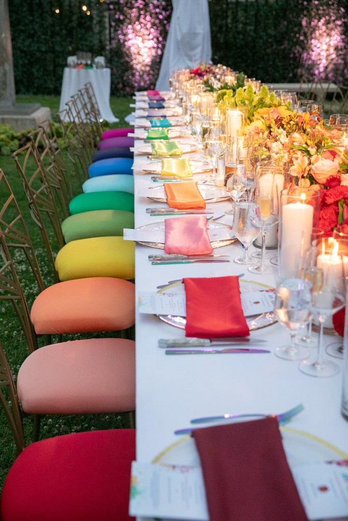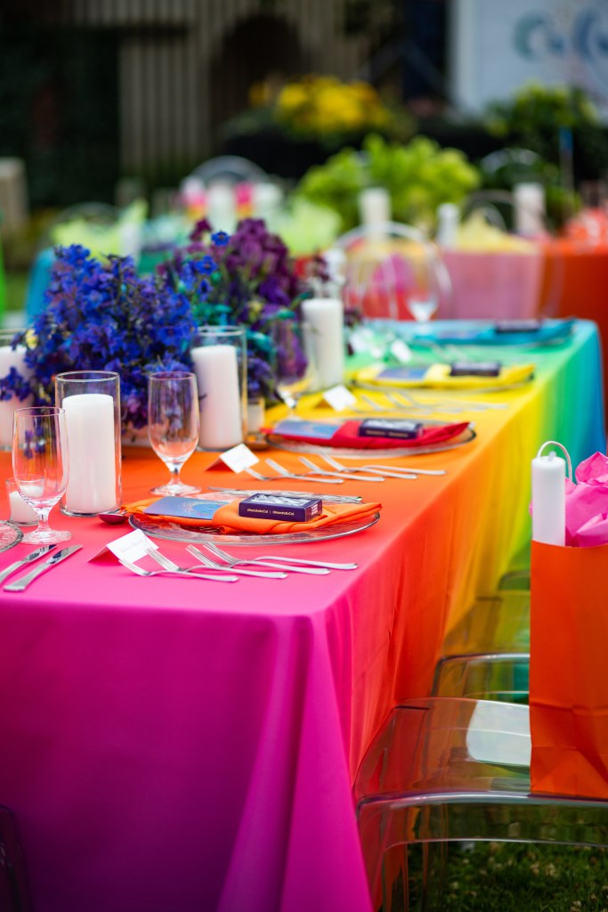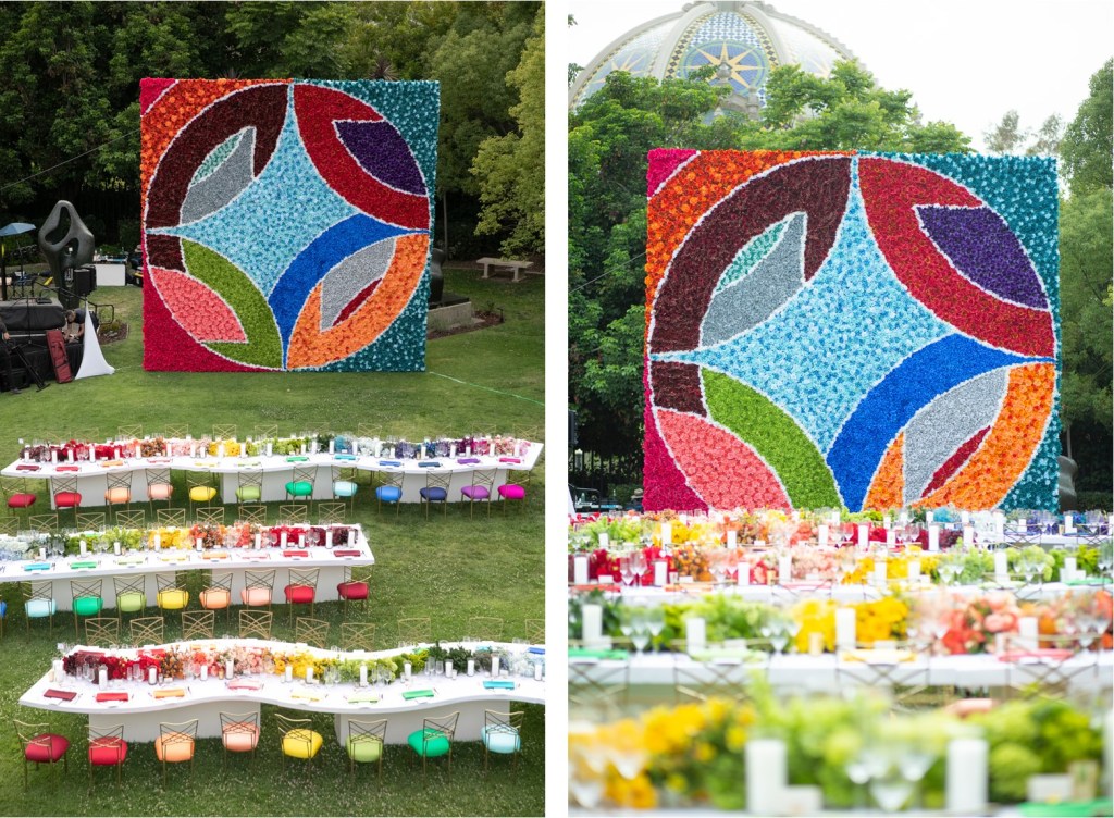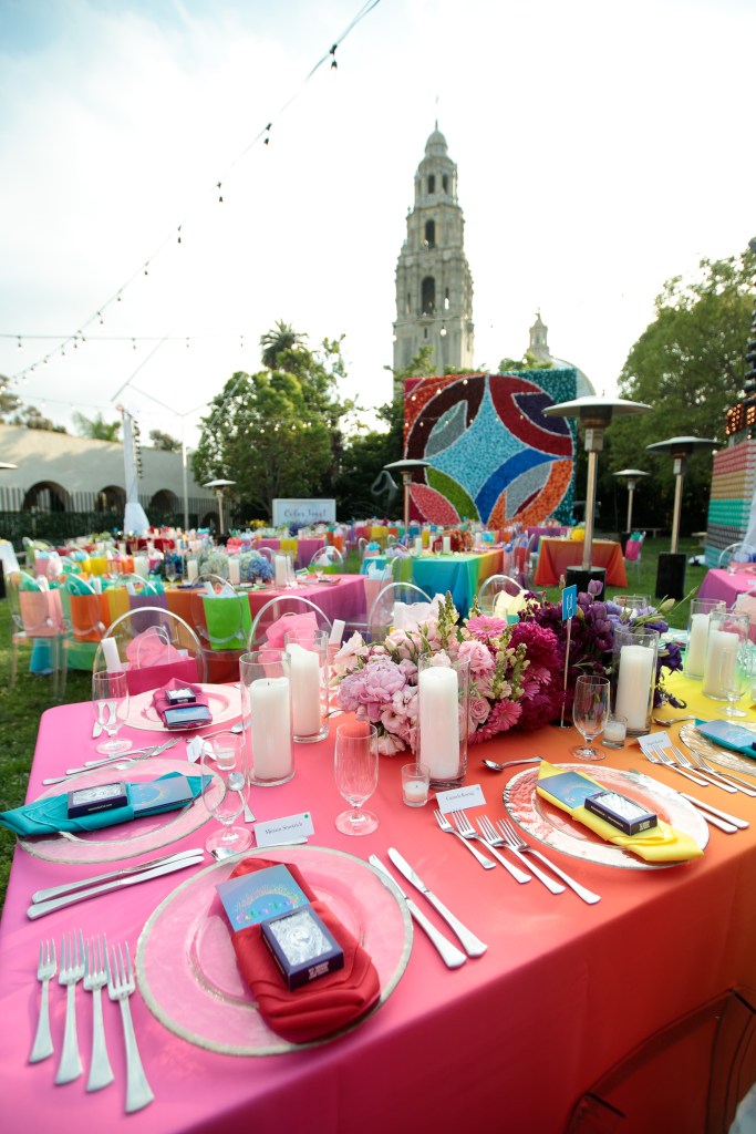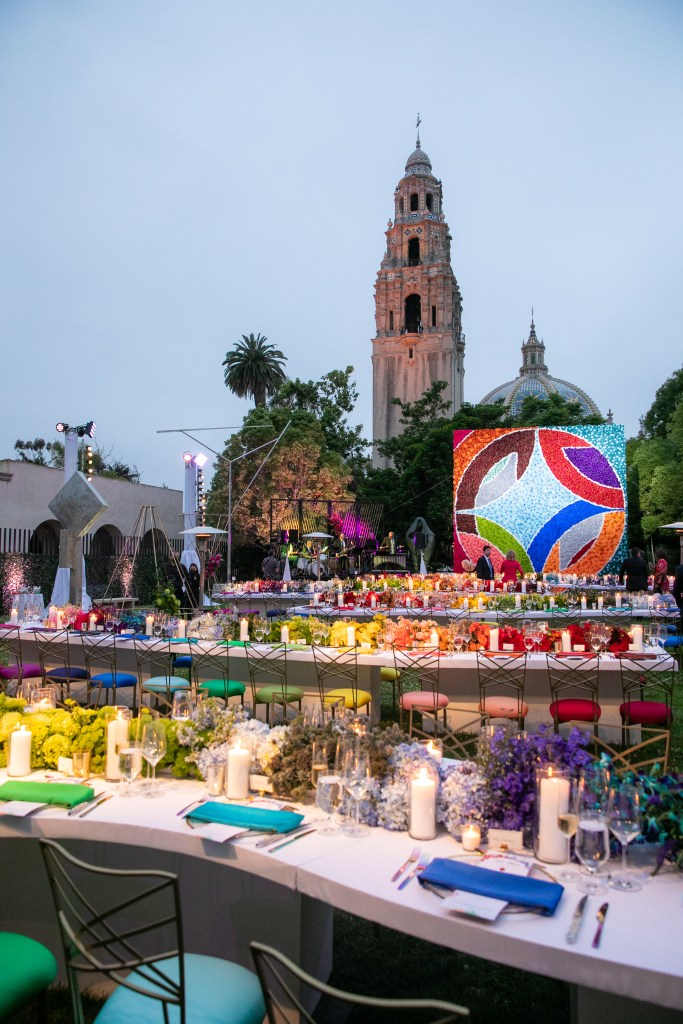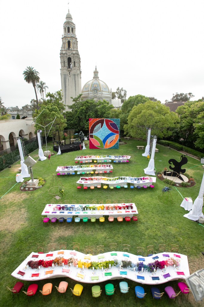 We had gotten completely through the planning of the San Diego Museum of Art‘s annual fundraiser Art Alive in 2020 only to have to cancel it just a few weeks in advance when he world shutdown. I felt like I got punched in the gut and then thrown off a cliff. Having worked on a project for more than a year to have it basically thrown away was a very demoralizing experience I hope to never go through again. And then having gone through more than a year without in-person events for someone whose career is in events…well…life was a lot less bright for sure. Needless to say, I was more than looking forward to the 40th anniversary of Art Alive in 2021. Just being “excited” for it isn’t really the right word or sentiment. It was more like obsessive infatuation and anticipation of finally getting to realize something you have been agonizing over for too long. Like being pregnant for 2 years and then finally being in labor; but for a full week. It was quite the build up and an immense challenge with planning this scale of an event with all the uncertainly of what things would look like in June. We worked hard to plan a completely new version of the weekend of events that was sure to be able to happen no matter what the state of the world was. We got so lucky that California “opened” the exact week we were holding our event. We were able to hold our annual black tie Premiere Dinner event which was so thrilling. But in addition to a brand new daytime activation space, we chose to modify this year’s Friday night event to a second dinner called Color Feast that was a bit more youthful and lively than then the dinner the previous night.