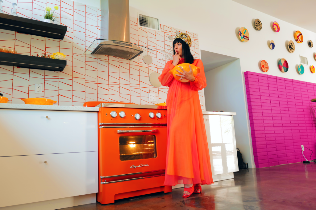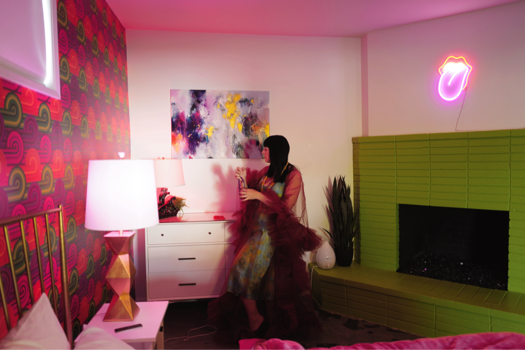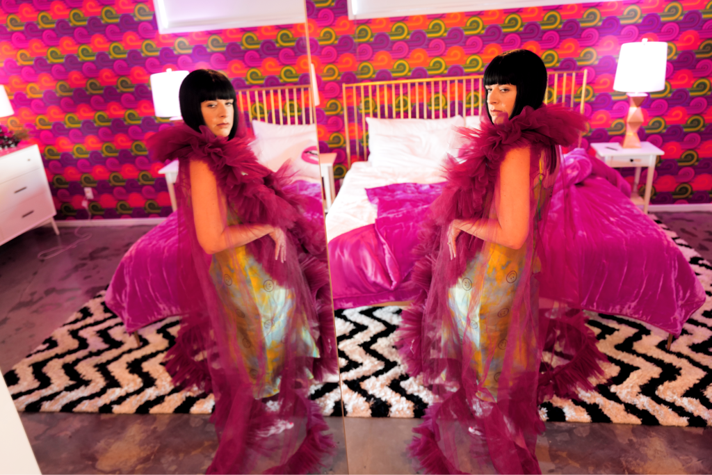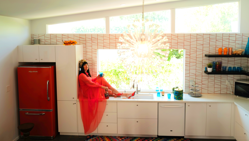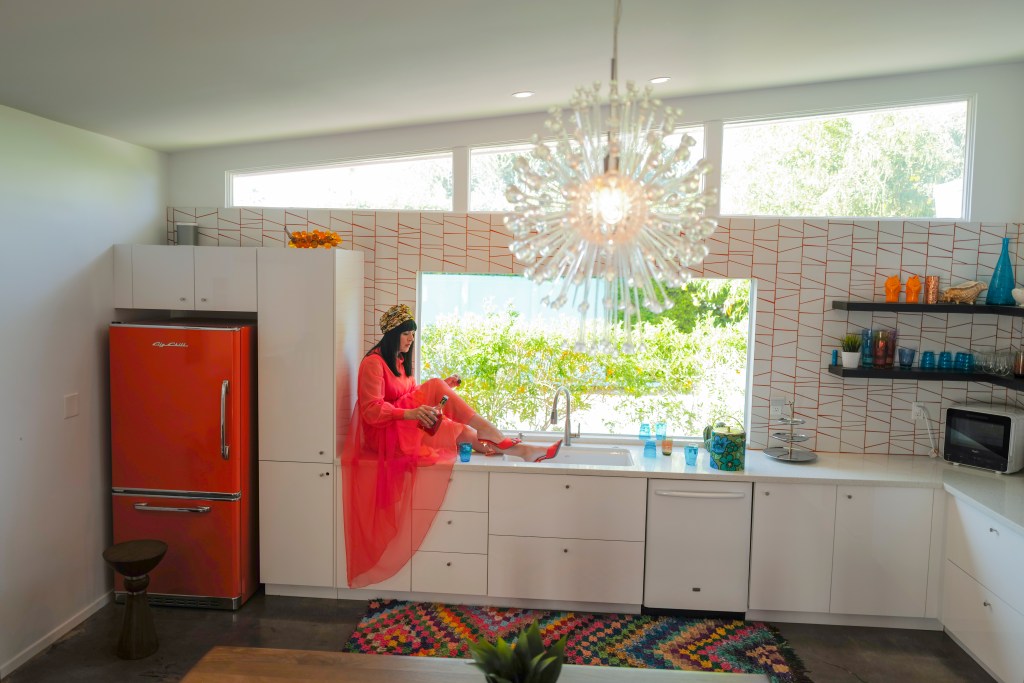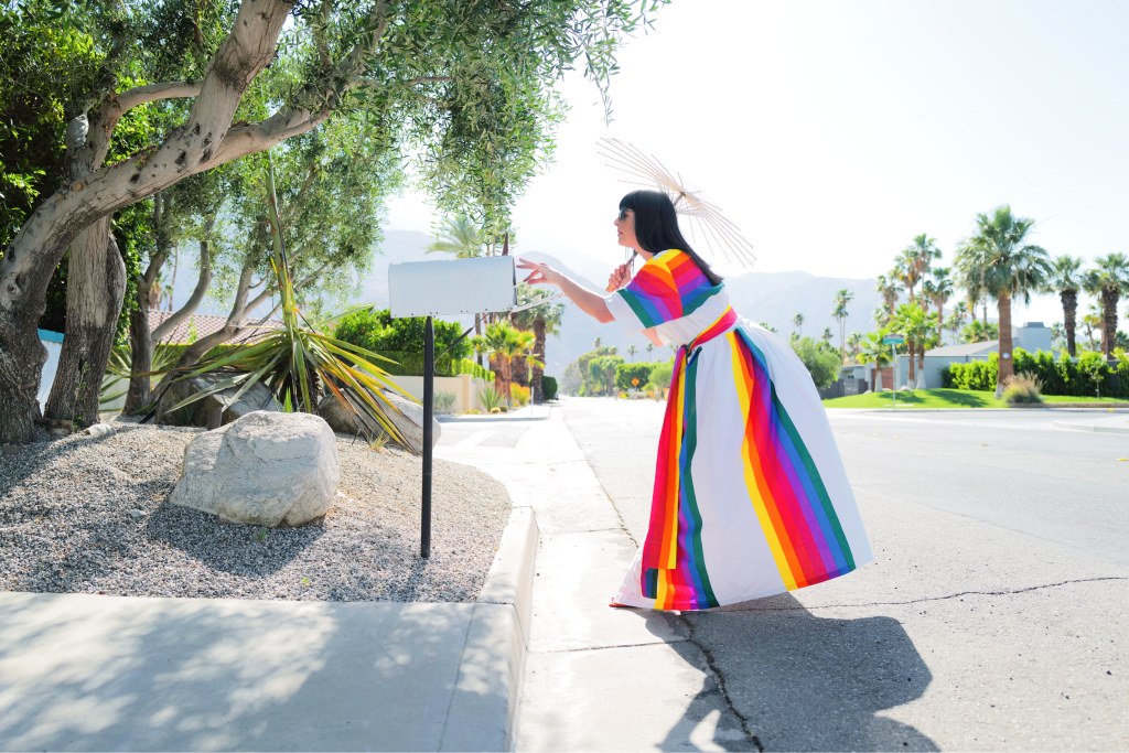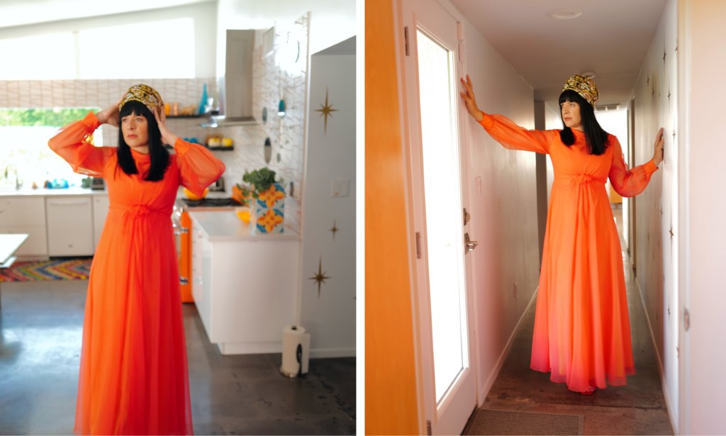 Welcome to the Rainbow Retreat…A colorful place that is so special in my second home Palm Springs. When we were planning our spring trip to PS I knew I wanted to stay in a house this time around. The seclusion and relaxation a private home offers cannot be beat, but I knew it also had to fit my vibe. I didn’t have to look any further than this quaint colorful retreat aptly named Rainbow. Originally built in 1956, it has all the classic characteristics of my favorite midcentury homes….clean lines, slanted ceilings, brickwork, and swaths of ample light. The owners have stayed true to the era but pushed it into full color glam mode which makes it lighthearted and just a bit extra…ok a lot extra. Each room has its own color scheme and personality. The kitchen was a personal favorite with the playful bright orange appliances and matching geo tile. And the main bedroom was cozy yet sexy with its provocative pink details and many lush touches. The outdoor spaces are a thoughtful entry to the indoor maximalist masterpiece with simple gravel pathways but with an abundance of colorful plants and florals and some pops of color on the gates. Its very possible to feel so comfortable and also so inspired at the same time. I called my friend and master photographer Everette (Jevpic) to shoot in this magical home space and these photos are such a mid-mod vibe! You too can stay in this very special space in my favorite desert oasis. My friends over at Rainbow Retreat are waiting for your call.