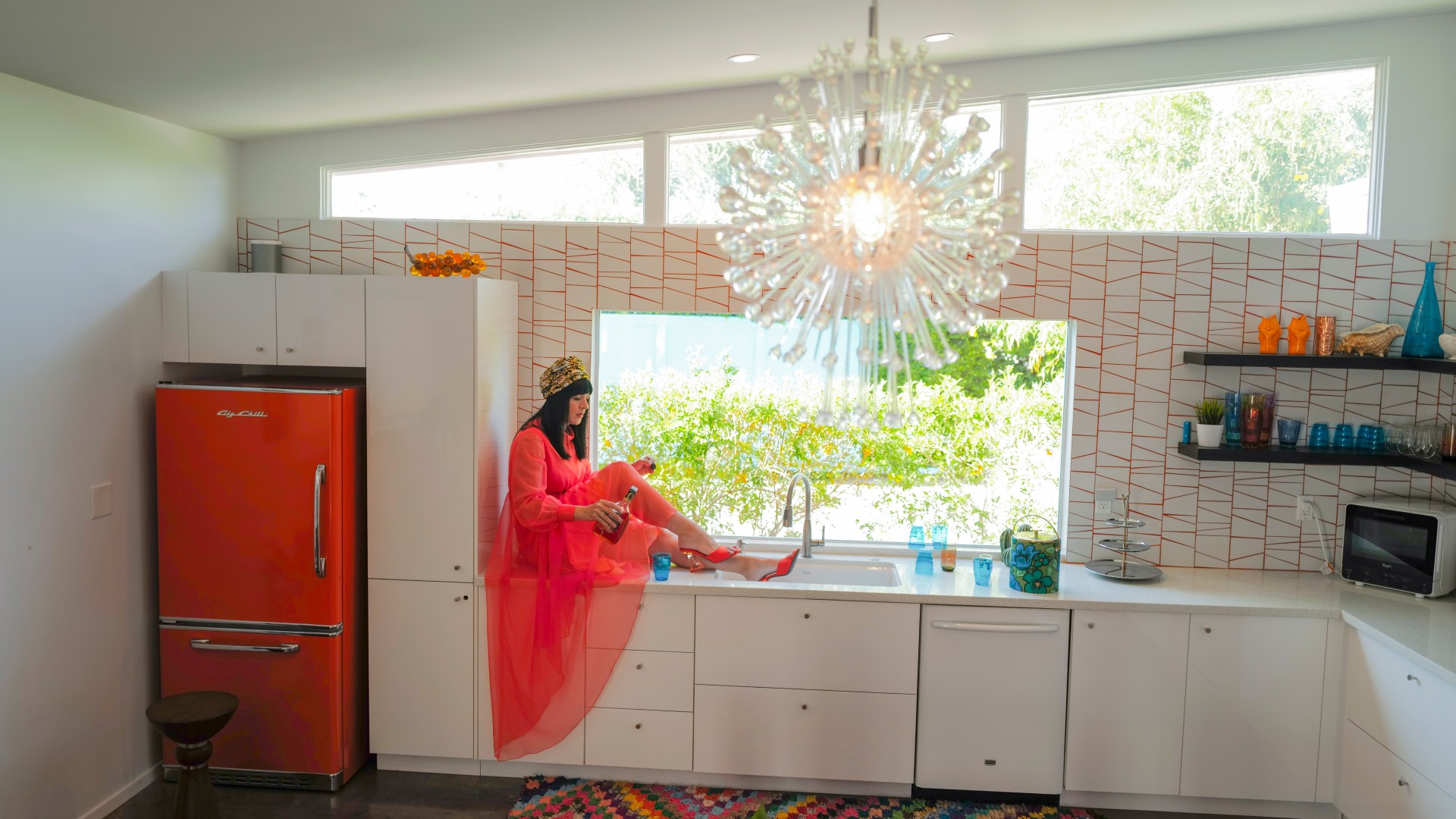 Welcome to the Rainbow Retreat…A colorful place that is so special in my second home Palm Springs. When we were planning our spring trip to PS I knew I wanted to stay in a house this time around. The seclusion and relaxation a private home offers cannot be beat, but I knew it also had to fit my vibe. I didn’t have to look any further than this quaint colorful retreat aptly named Rainbow. Originally built in 1956, it has all the classic characteristics of my favorite midcentury homes….clean lines, slanted ceilings, brickwork, and swaths of ample light. The owners have stayed true to the era but pushed it into full color glam mode which makes it lighthearted and just a bit extra…ok a lot extra. Each room has its own color scheme and personality. The kitchen was a personal favorite with the playful bright orange appliances and matching geo tile. And the main bedroom was cozy yet sexy with its provocative pink details and many lush touches. The outdoor spaces are a thoughtful entry to the indoor maximalist masterpiece with simple gravel pathways but with an abundance of colorful plants and florals and some pops of color on the gates. Its very possible to feel so comfortable and also so inspired at the same time. I called my friend and master photographer Everette (Jevpic) to shoot in this magical home space and these photos are such a mid-mod vibe! You too can stay in this very special space in my favorite desert oasis. My friends over at Rainbow Retreat are waiting for your call.