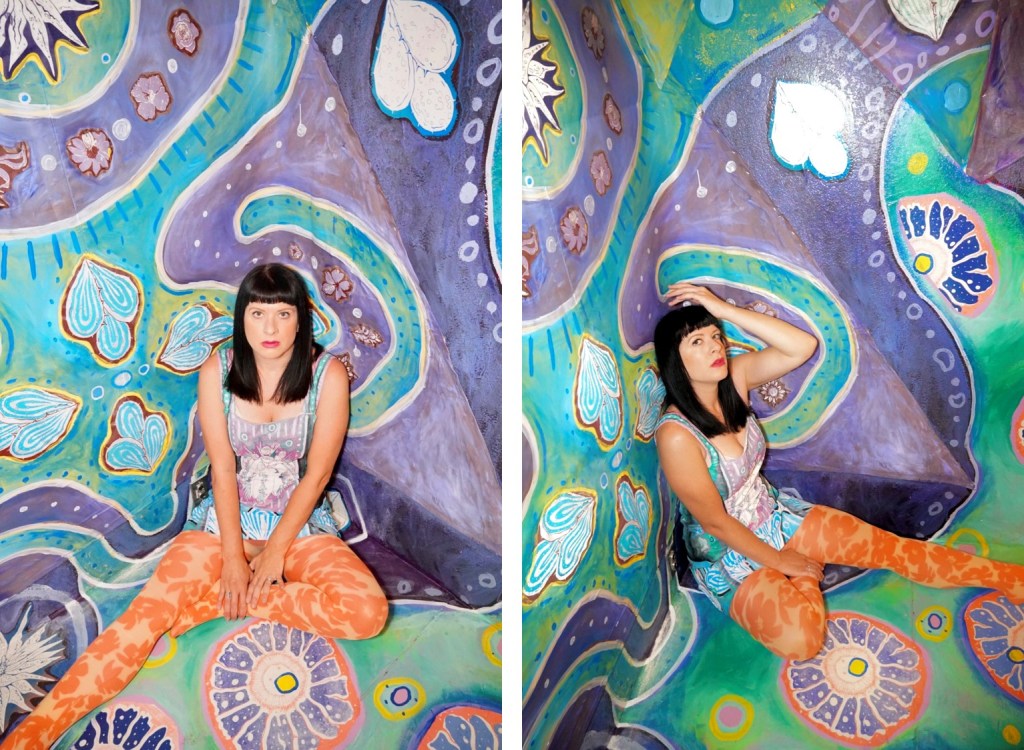 Im so excited to finally share this post. I have become a super fan of artist Laurie Shapiro’s work after connecting with her on Instagram, and when I visited Phoenix a couple months ago, I was lucky enough to get private access to her permanent installation The Joy of Purpose at an arts and music collective in the downtown area called Walter Studios. This was the piece that first inspired me so much that I reached out and I was so jazzed to get to see it and shoot privately. I was not disappointed as her work in this space is a color lovers dream and the immersive aspect of it was executed to perfection. I was even more lucky to have Laurie create me a hand painted dress to match the piece to shoot in the space.