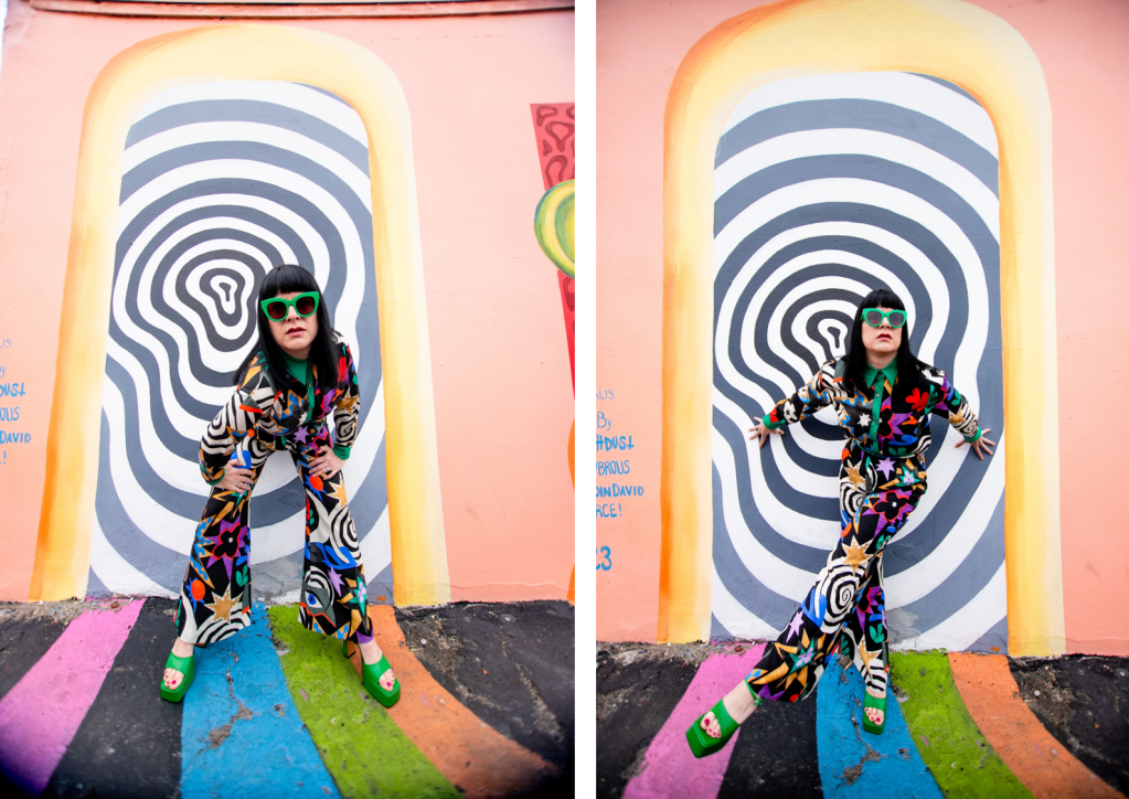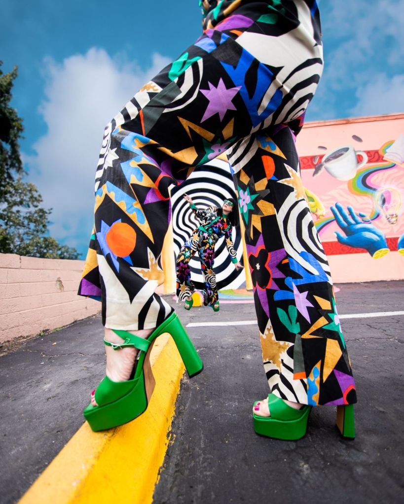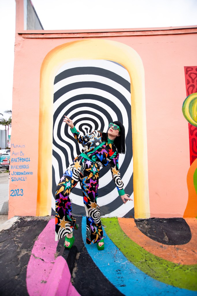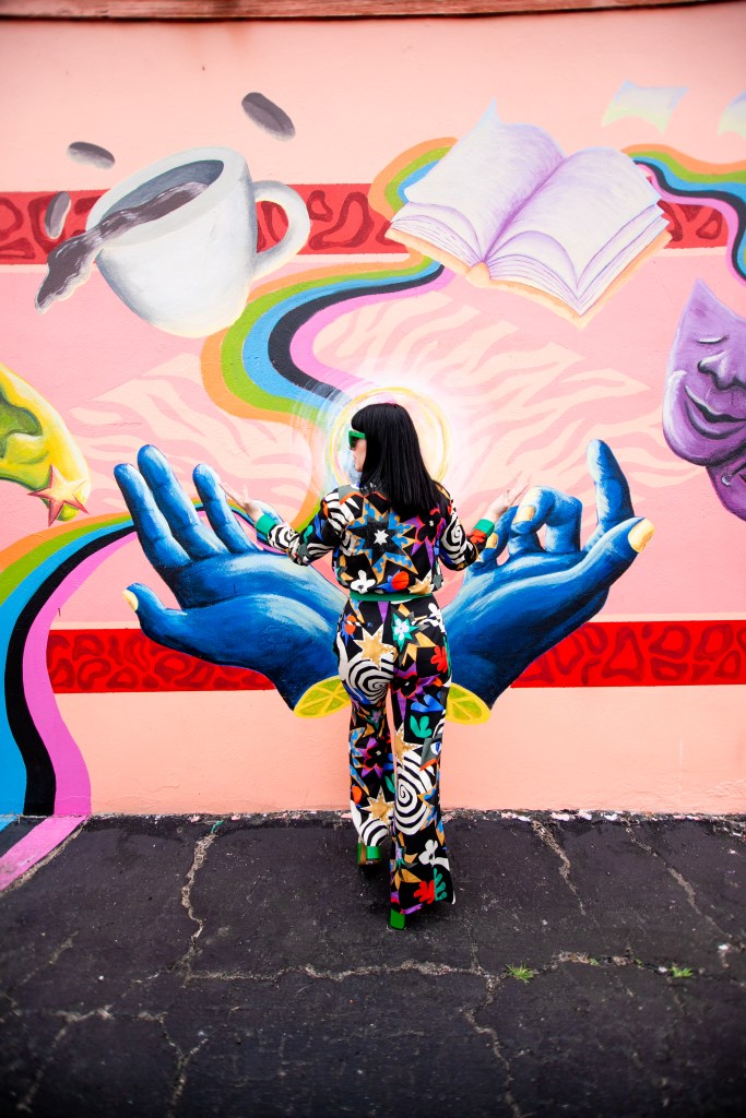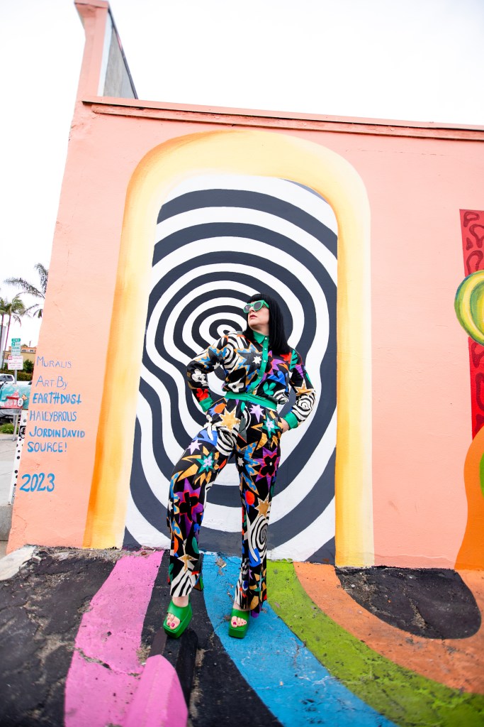 I usually know a lot about a place and the art I will be shooting with ahead of time. I scour the inter-webs for new murals in town and once I land on something, I research the artist, the art’s location, best time for day for lighting, the direction it faces, options for parking, etc. Its kind of an obsession and why I think so many of my shoots turn out as well as they do. When I came across a post for a gorgeous and off the wall new mural in OB, I was immediately intrigued and added it to my mood board, however, because of this season’s immense busy-ness, I neglected to even look up the location. I had it on my mood board for months and was lucky enough to find literally the most perfect fashion match for this piece by Untitled in Motion….one that I now consider to be in my top 5 for fashion-to-art pairings. STILL i didn’t look up anything about the artist, the location, shoot environment….I do not know why! When Angela (Create with Gusto) and I headed down for the shoot, the most I had done was figure out the address not knowing what it was. When I got there I realized the reason was that something in me needed to let go of some of this pre-planning and just show up with a little mystery and let the magic happen. Im a type-A over planner in all areas of my life, however this time there was no overthinking and it really just had a flow to it. Even in the moment, both Angela and I could see the results were going to be some of our favorites in long while. And we were also blessed to find out the location for the mural was not only a great coffee shop, but also a haven for artists and art-loving community called TEMPLATE. We spent a little time inside and I feel some of the good vibes we felt had been radiating out during our shoot as well. I’m intrigued by this group of talented creatives and what they are building. Not only am I excited to share the photographic results of this trippy good-vibes shoot that I am in LOVE with, but also this exciting new coffee and art collaboration location.