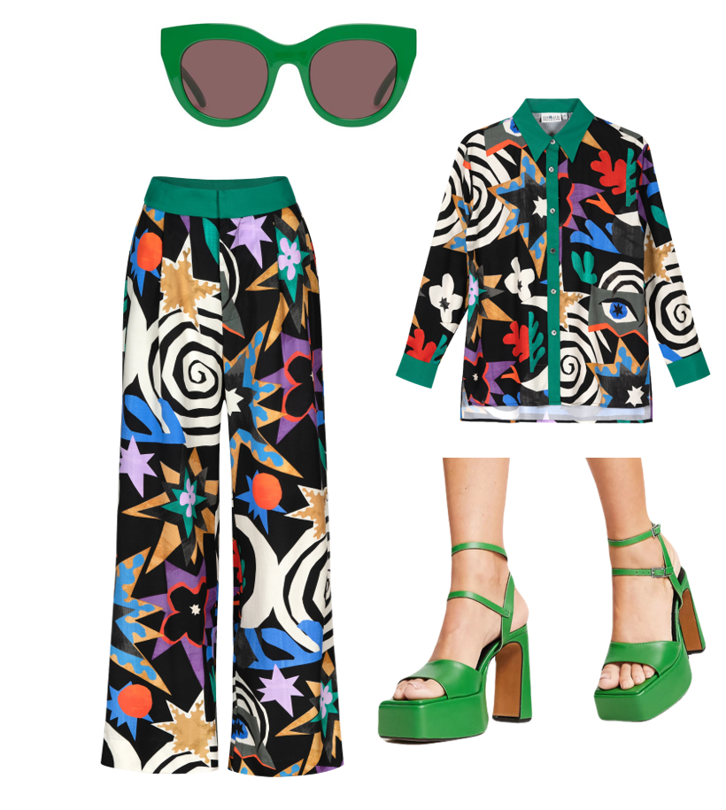 Top and pants: Manifest Top and Petra Pant in Theia print by Untitled in Motion