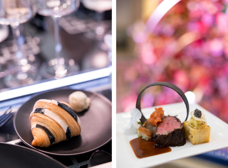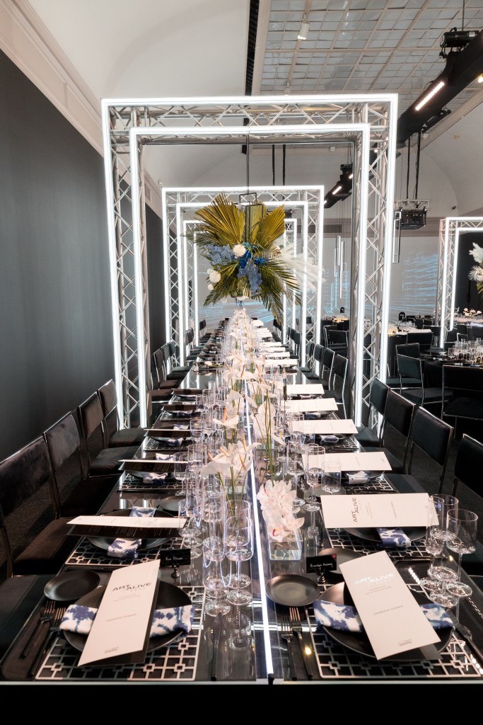 The Premiere Dinner always sets the tone for the Art Alive weekend, and this year’s was a literal dream once again. Held in one of the Museum’s upstairs vaulted galleries, the design, brought to life by PEP Creative, featured a custom-built metal over table installation with embedded lights inspired by Foster + Partners’ signature elegance, alongside a full wall projection featuring details from the firm’s projects around the world. The hanging floral installations by Green Fresh Florals hovered like levitating structures, while their centerpieces brought some much needed softness and whimsy into the hard edged space. For the meal itself, Coast Catering married classic fare with high-quality ingredients and incorporated sculptural elements and high contrast colors… while never skipping on immense flavor! The whole room felt like an architectural rendering brought to life.