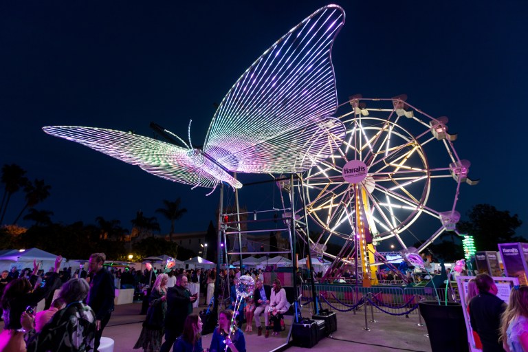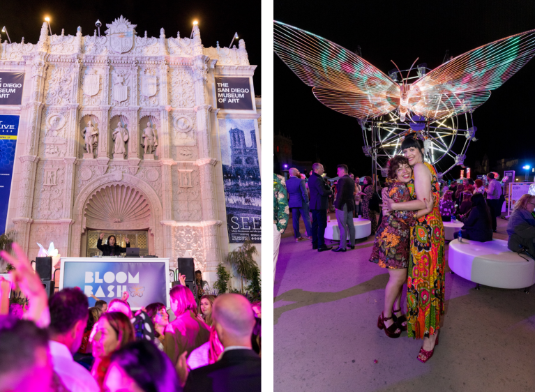 Guests were treated to delicious bites from over 35 top San Diego eateries, delectable signature cocktails, land Entertainment was equally dazzling music and entertainment such as DJ Gabe Vega, live saxophone performances by Erisa Nicole, and fancy footwork by the Flashpoint Skate Team. Highlighting the night’s artistic vision were captivating light installations by Christopher Schardt and Ramon Franco Arambula, and a stunning mural by local Chicano artist German Corrales. A whimsical touch was once again provided by a Ferris wheel on the plaza offering panoramic views of the vibrant atmosphere. Bloom Bash 2025 was a true testament to the creativity, energy, and community that have defined this beloved event for a decade.