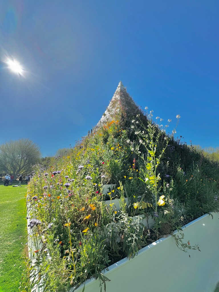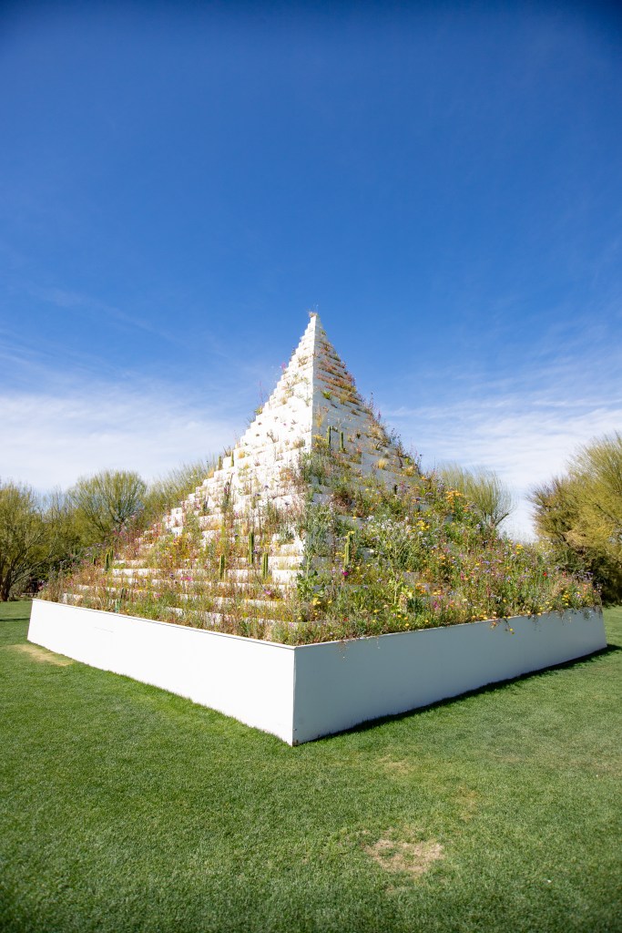 The Living Pyramid is a monumental earthwork rising from the grounds of Sunnylands Center & Gardens. Built from layers of soil and planted with native vegetation, the pyramid grows, changes and blooms over time. The structure is both sculptural and organic and reminds us that beauty often lies in change. It was striking yet serene and is never the same twice. Each visit offers a new expression of growth and color.