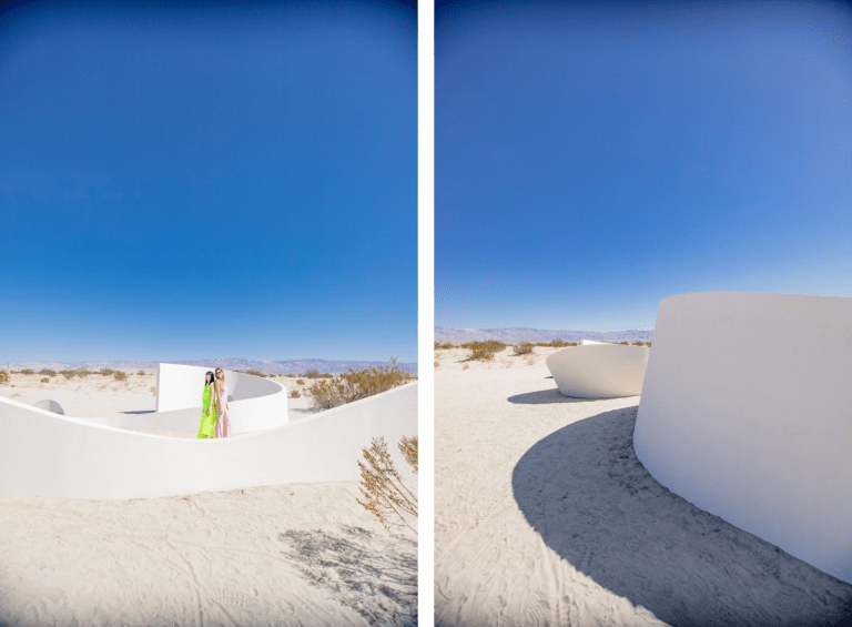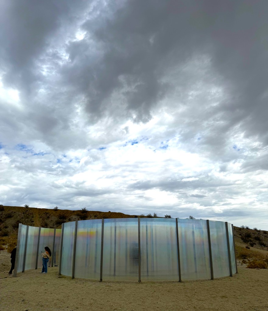 To Breathe is a shimmering glass installation in a spiral formation that changes with the light around it. Covered in a special film, the structures panels bend sunlight into shifting rainbows in an ever-changing play of color. The piece connects thoughtfully with the desert landscape creating a fanciful conversation between art and nature. Being inside this installation felt like stepping into a dream. It was peaceful, colorful, and left me full of wonder. It’s a simple yet powerful display of how light can transform a space.