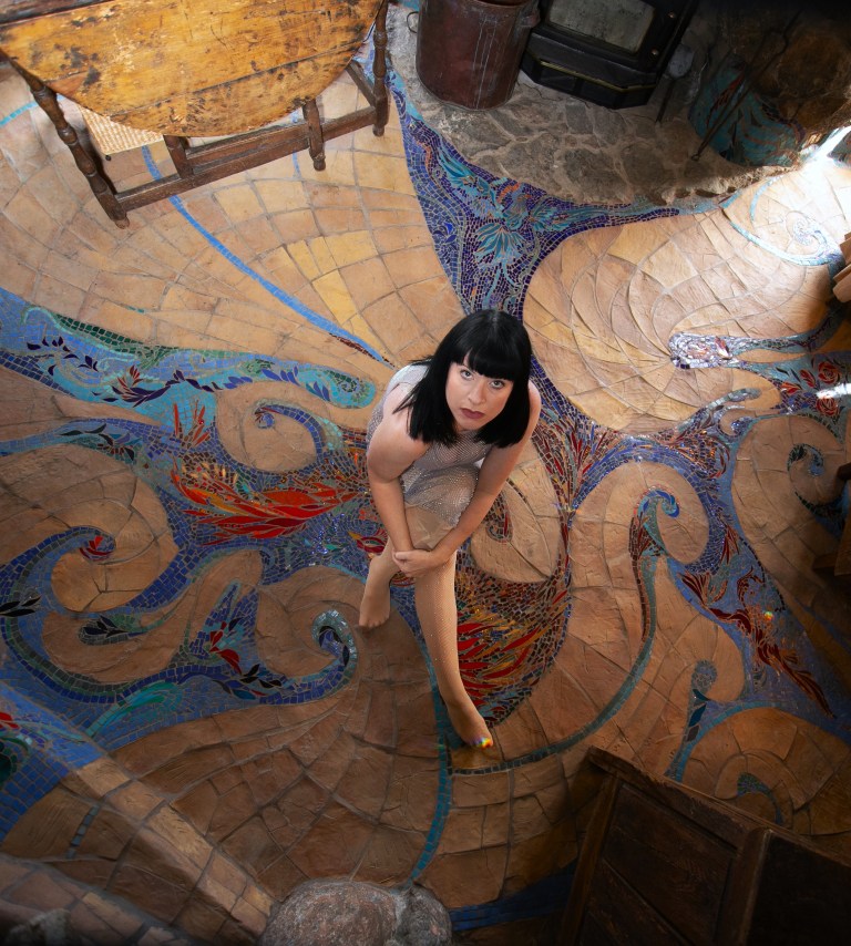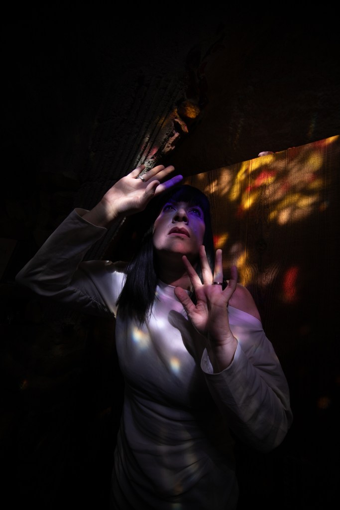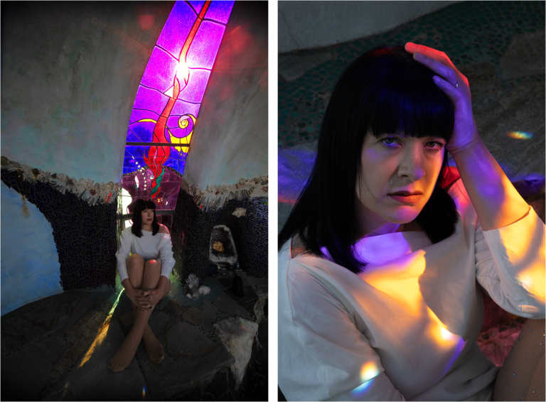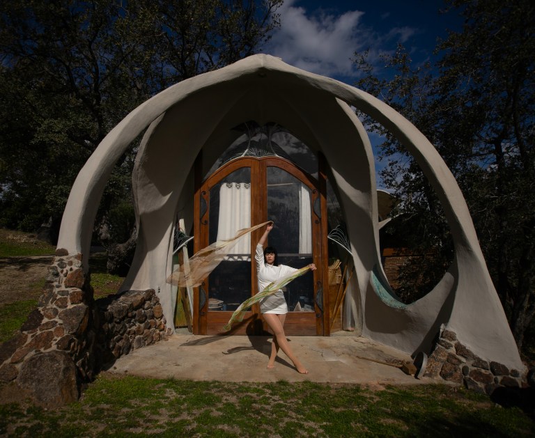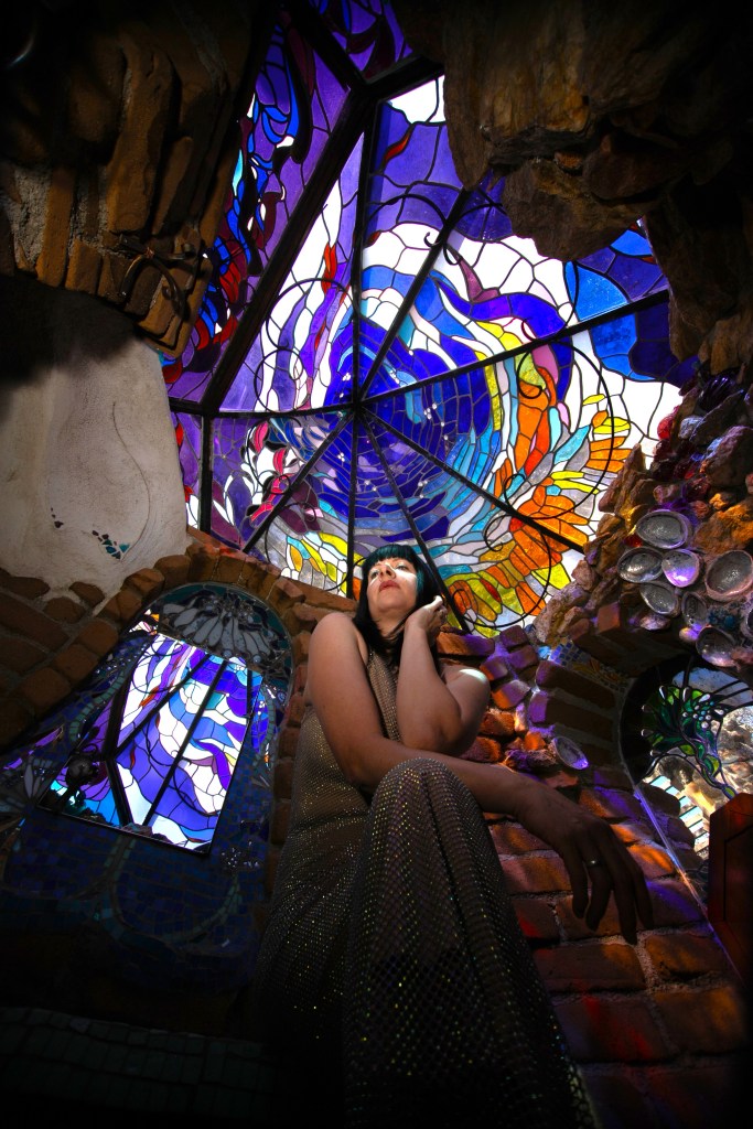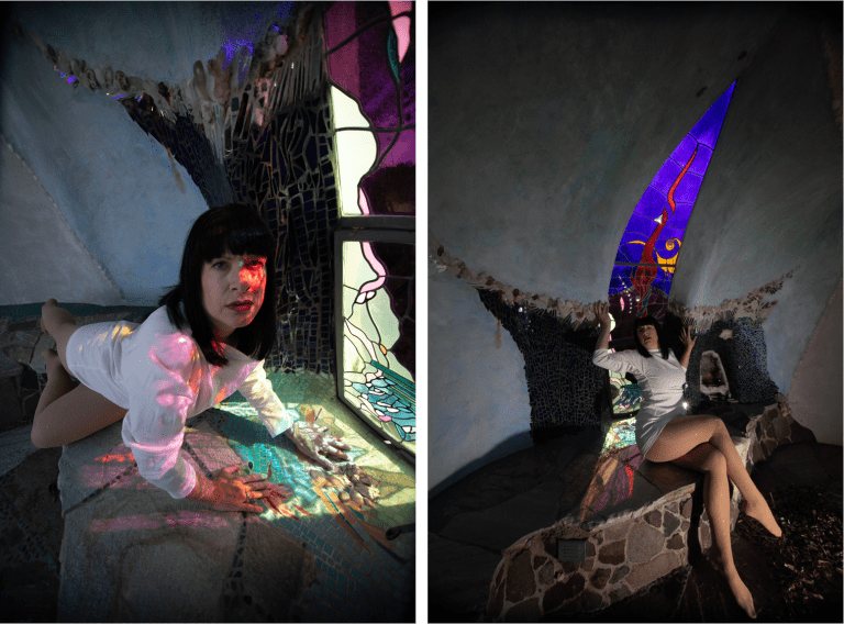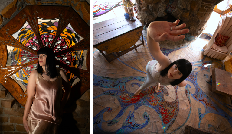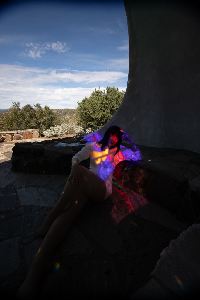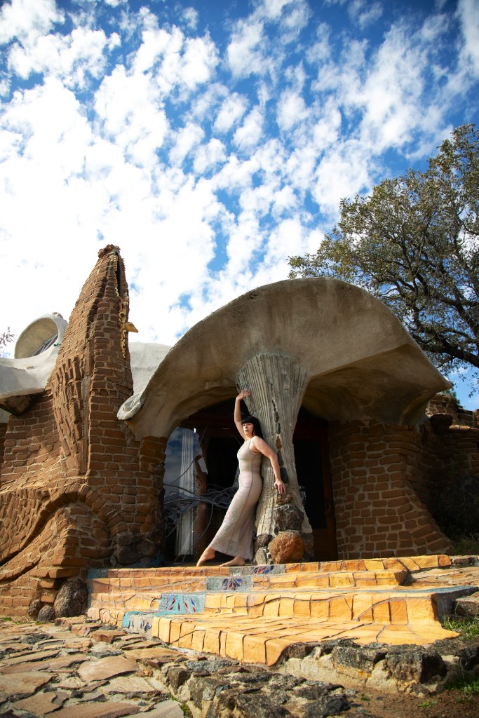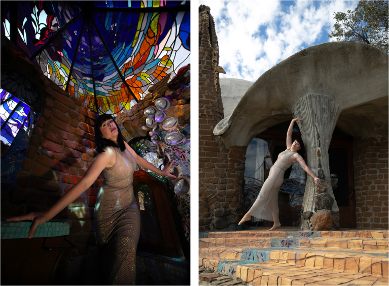 Today, the site is preserved as a nonprofit cultural foundation that hosts tours, educational programs, and gatherings that continue Hubbell’s mission of connecting art, nature, and community. Photographing there felt especially meaningful for my practice, which often responds to the forms, textures, and spirit of the spaces I work within. My collaborator and friend, photographer Angela Garzon, was visibly moved as we explored the grounds together. There was an overwhelming sense of peace and serenity, but also something deeply emotional in realizing this wasn’t just an artistic vision, it was James Hubbell’s home, the place where he raised his family and lived out the ideas reflected in every wall and window. That personal imprint made the experience feel intimate and human, and our shoot became less about documentation and more about responding to the spirit of a place shaped by a life lived through art.