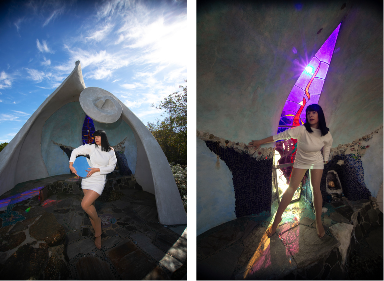I’ve been a longtime admirer of Hubbell’s work, often seeking out his public pieces throughout San Diego over the years. His sculptures and architectural elements quietly shape the spaces they inhabit, and I’ve always been drawn to how naturally they belong to their surroundings. Being able to experience Ilan-Lael felt with private access to the property and meeting the people who now care for and steward this remarkable space made the moment even more meaningful. It was inspiring to see how Hubbell’s spirit continues to live on through the community dedicated to keeping this place alive. Creating imagery here truly felt like the shoot of a lifetime, and I feel deeply honored and grateful to have had the opportunity to work in such a special place.